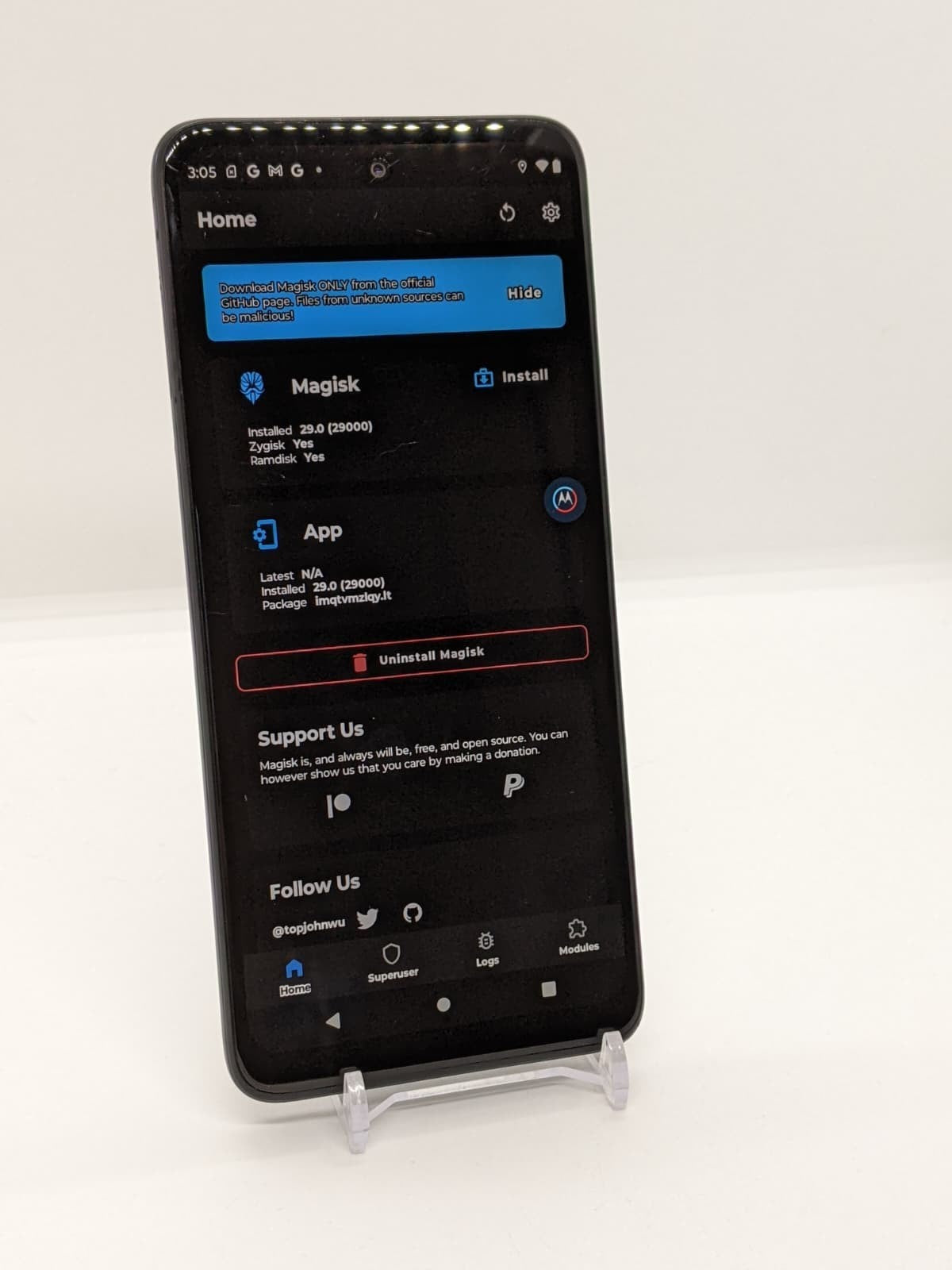- Please do not update the operating system or the Magisk App on this device. Doing so may cause loss of root access or boot loop.