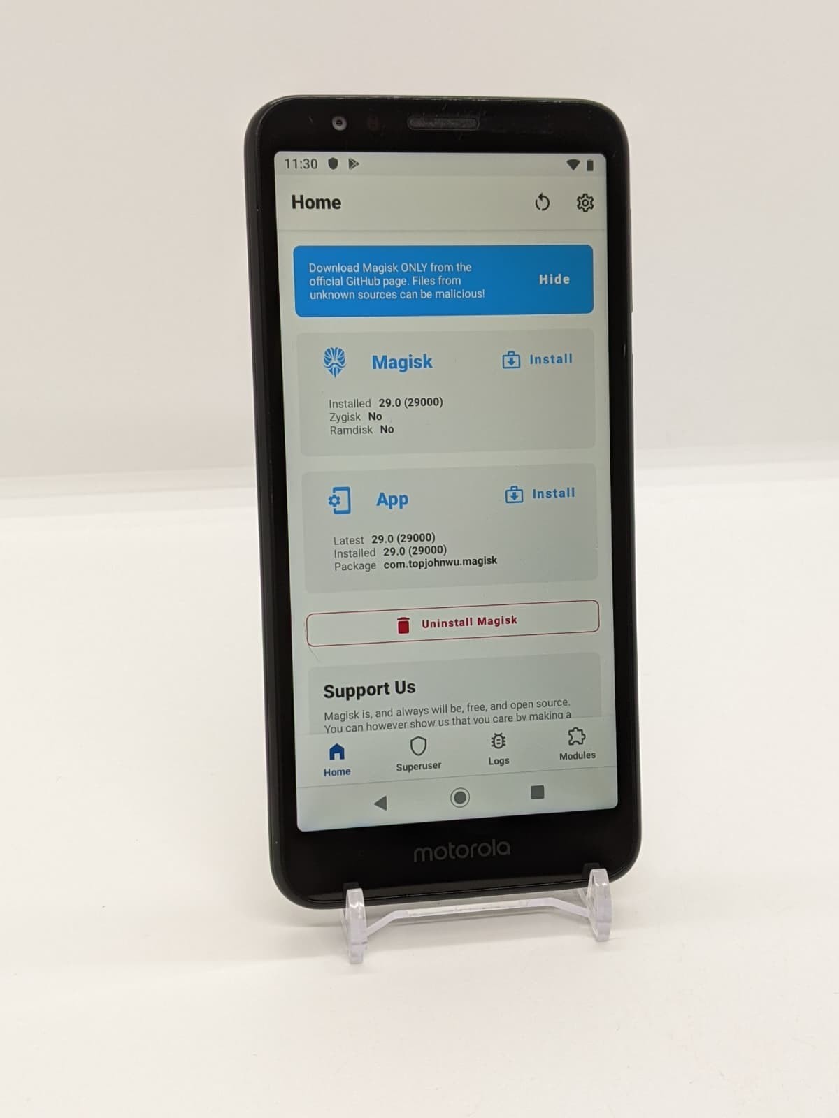 - This Motorola Moto E6 (XT2005-5) is fully rooted with Magisk for advanced customization.