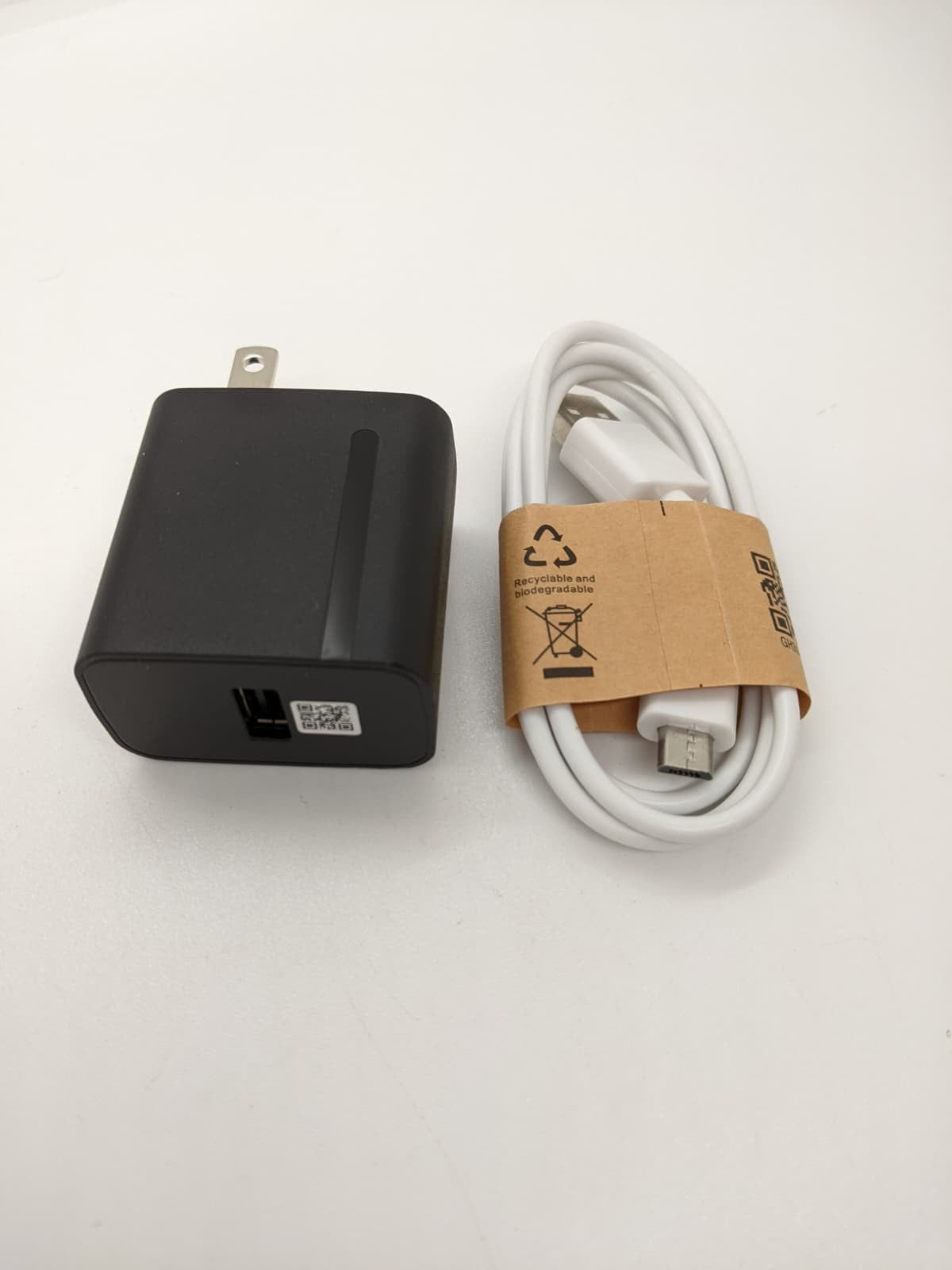 Comes with: Device, Micro USB Cable and USB Wall Charge Block.