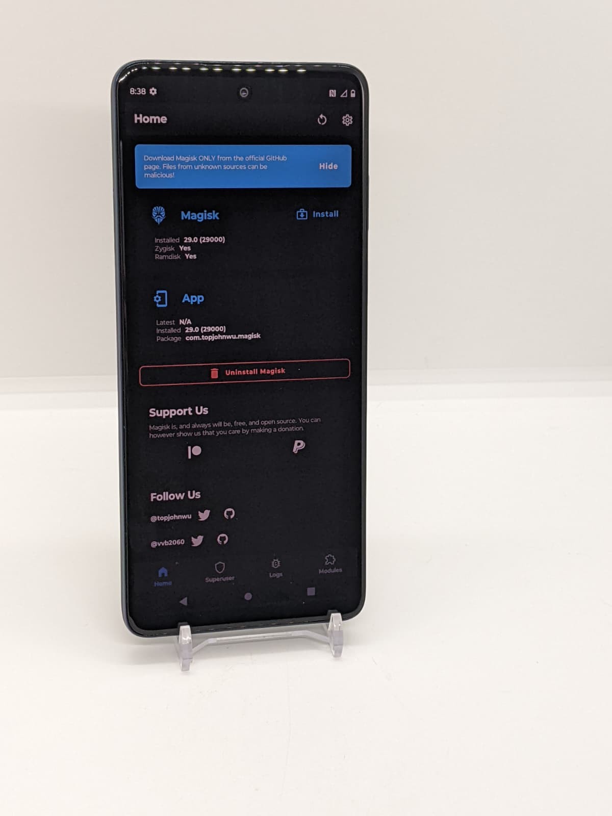 • Do not update the operating system or the magisk app on this device. Doing so may cause loss of root access or boot loop.